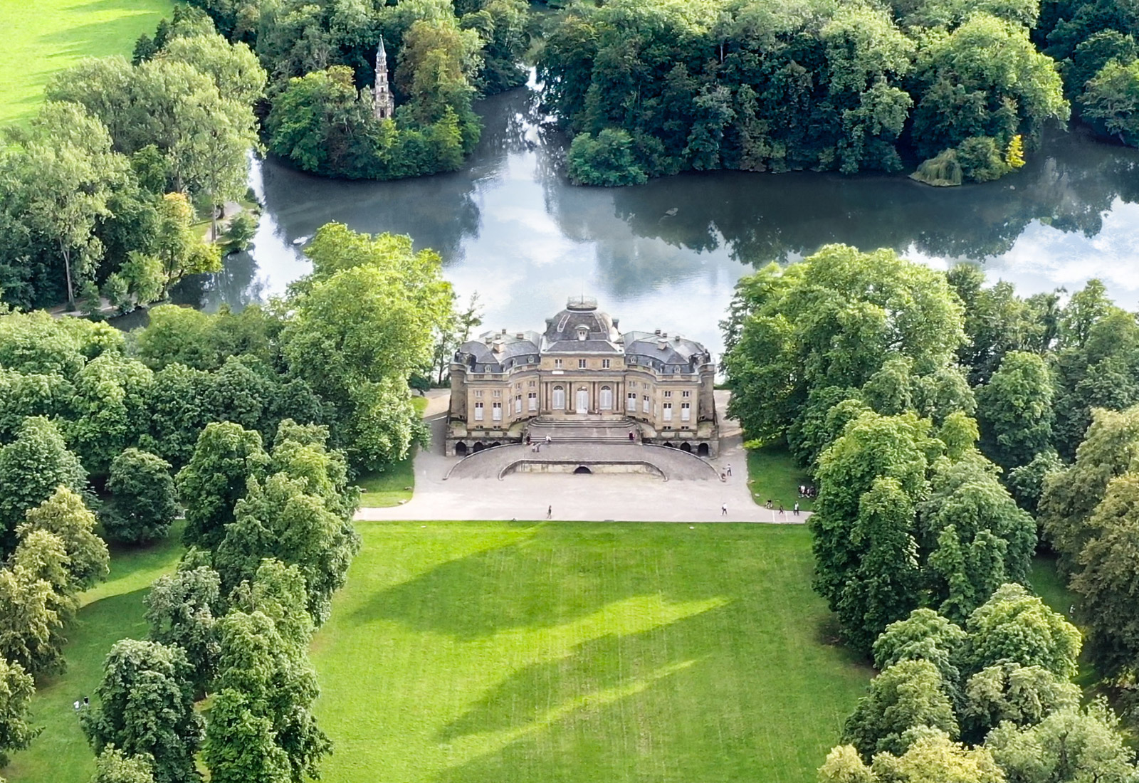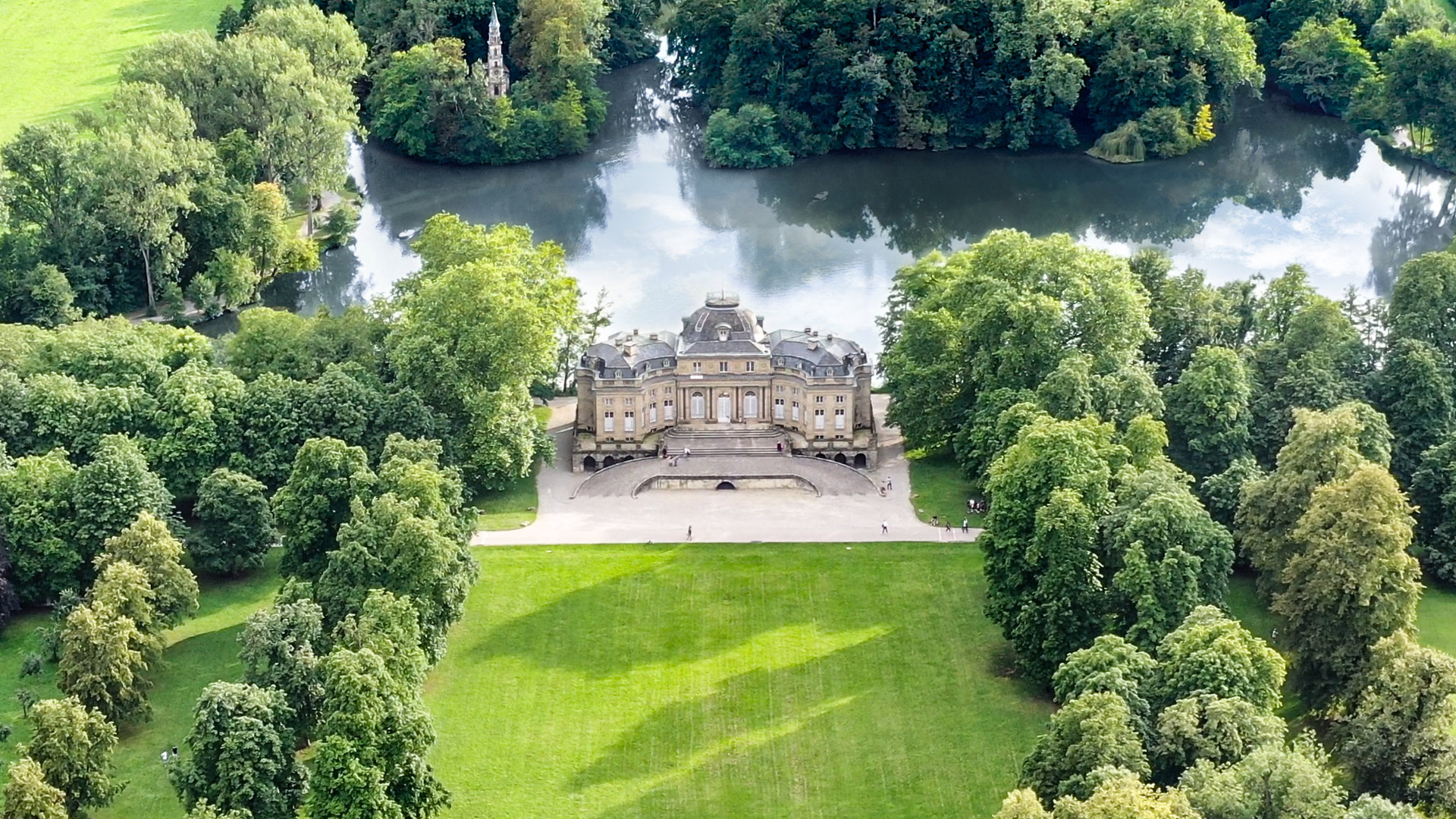 Inmitten weiter Felder, Wiesen und Seen liegt idyllisch das traditionsreiche Schloss Monrepos. Von mächtigen Bäumen umarmt, präsentiert sich dem Gast ein wunderschönes Ensemble mit dem herrlichen Seeschloss, dem spiegelnden See und dem weitläufigen Park der herzoglichen Domäne.